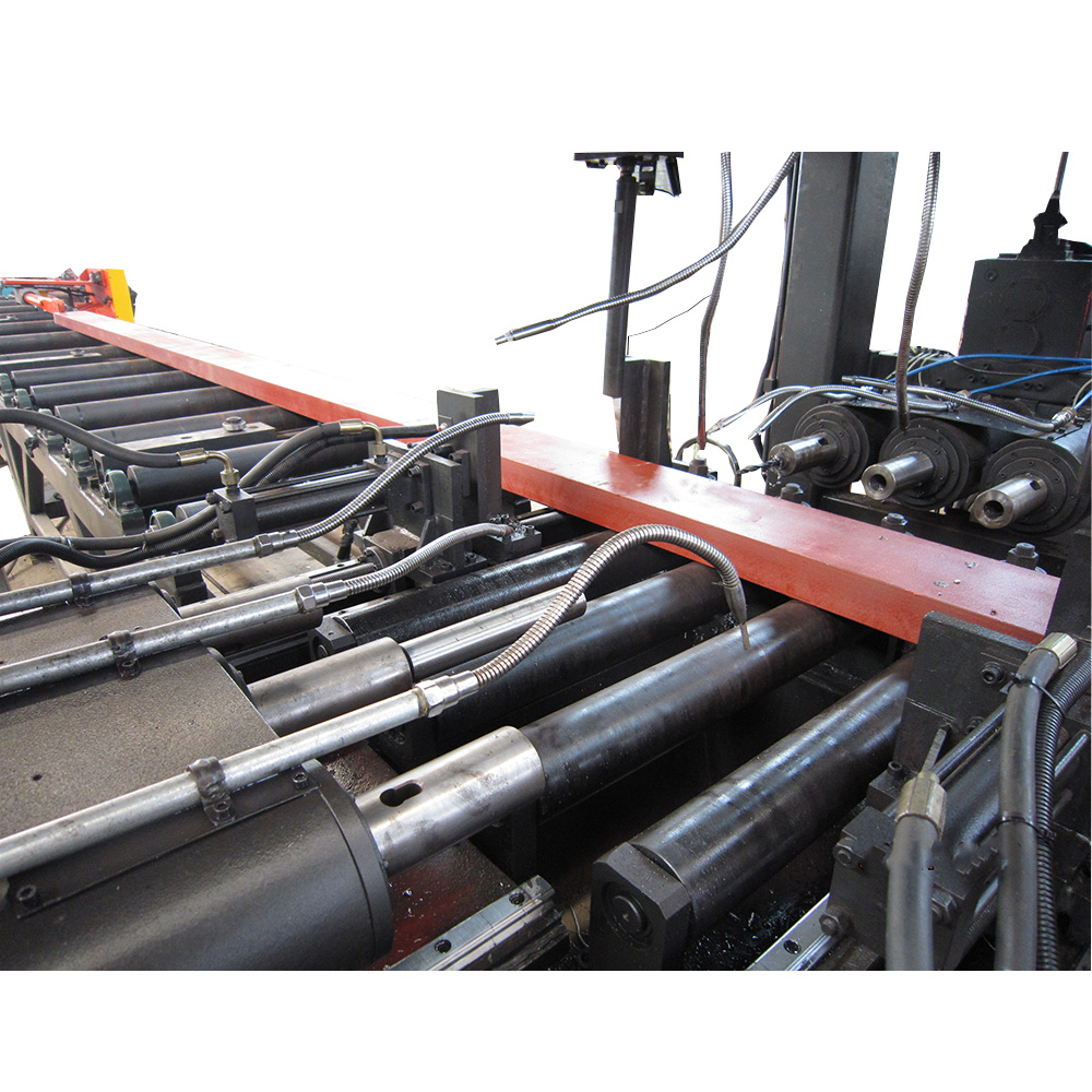 本機(jī)床主要用于H型鋼、槽鋼和箱型梁的鉆孔加工,廣泛用于立體車(chē)庫(kù)、鋼結(jié)構(gòu)建筑、橋梁、塔桅和網(wǎng)架等行業(yè)。4軸數(shù)控型鋼三維鉆床采用四個(gè)伺服電機(jī)實(shí)現(xiàn)2個(gè)垂直方向、1個(gè)水平方向和1個(gè)長(zhǎng)度的鉆孔定位。3個(gè)鉆孔面上,每個(gè)面有3個(gè)鉆孔主軸,每個(gè)面上的3個(gè)鉆孔主軸由一臺(tái)變頻電機(jī)驅(qū)動(dòng),鉆孔主軸為自控行程鉆孔主軸,工件一次通過(guò)設(shè)備后三個(gè)面上的孔均可加工完畢,效率高,孔位精度高,是鋼結(jié)構(gòu)制造業(yè)中保證質(zhì)量的必不可少的設(shè)備。